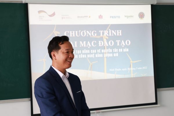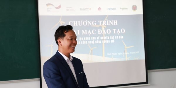 The further training was implemented in the frame of the Development Partnership (DPP) Vocational Training Center for Renewable Energies – Wind and Solar Technology. The DPP is implemented jointly by the cooperation partners Vietnam Industries Building Services JSC, Festo Didactic SE, Schneider Electric Vietnam, Ninh Thuan Vocational College, and Deutsche Gesellschaft für Internationale Zusammenarbeit (GIZ) represented by the Programme Reform of TVET in Vietnam and supported by the develoPPP.de programme of the German Federal Ministry for Economic Cooperation and Development (BMZ).