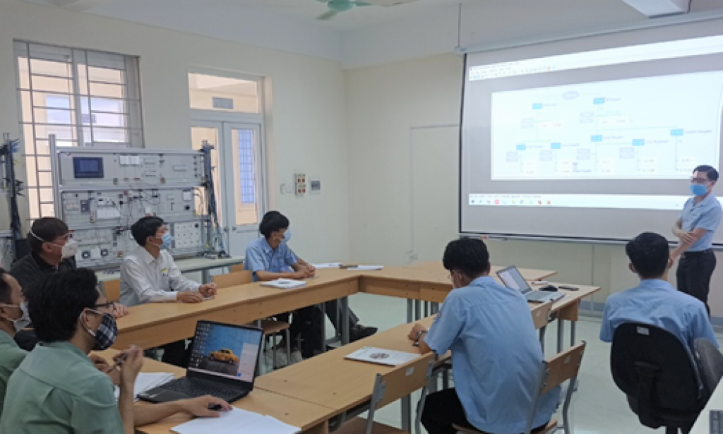 From May 19 to May 21, 2021, the further training course to instruct 8 teachers and candidates who will take part in the selection for the World Skill competition 2022 on advanced KNX was conducted by an experienced trainer in the field – Mr Duong Huu Phuoc – at the College of Machinery and Irrigation (VCMI). The teachers who participated in this training course directly deliver the training for the German standard oriented occupation “Electronics Technician for Energy and Building Technology” at the College.