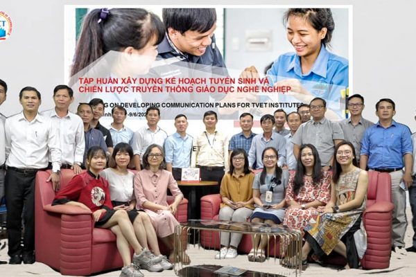 During the three-day training, participants revised key concepts of SWOT analysis, goal setting, building customer personas, creating key messages, event planning, and long-term communication strategy development. They applied these concepts to practice building specific strategies for their TVET institutes’ brands and occupations. “The practical sessions and group discussions help deliver the theories in realistic contexts, giving us the opportunity to reassess the strengths and limitations of previous admissions seasons, listen to feedback and effective methods of other colleges, and brainstorm more ideas for our own colleges’ communication activities in the coming years,” Ms. Nguyen Vu Bao Chi of Hue College of Industry shared.