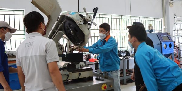 Similar to the first course, the objective of the training is to provide extensive knowledge and practice opportunities for the teachers and students on maintenance and repair of machine and equipment. In other words, it allowed the two trainers to multiply their experience and skills for other teachers and students in the faculty. There is a wide variety of machinery covered throughout the course, namely conventional turning and milling machine, CNC oxyfuel cutting, hydraulic power shears, band saw machine… therefore the trainees have been very well-prepared to carry out the actual maintenance and repair works in the future.