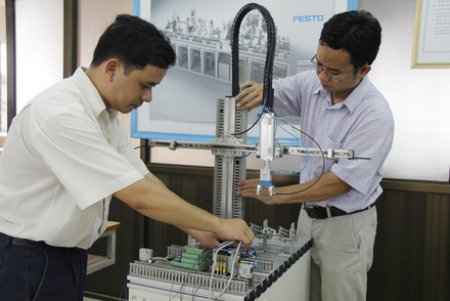 From 13rd to 24th May 2013, the advanced training course for teachers/instructors on “Mechatronic Stations – Assembling, Installation and Commission” was organized at Hung Yen University of Technology and Education. The advanced training is jointly organised by GDVT and GIZ under the Programme “Vocational Training 2008” to improve the methodical and didactical knowledge and skills to teachers/instructors. This course aims to provide practice orientated advanced training on mechatronic stations with industrial level.