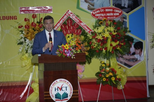 Ho Chi Minh City, November 22nd, 2018 – Today, the closing ceremony of the cooperative pilot training programme for Sewage Engineering Technicians took place at Ho Chi Minh Vocational College of Technology (HVCT). Attending the ceremony were leaders from the Ministry of Labour-Invalids and Social Affairs (MoLISA), the State Minister for Economic Affairs, Labour and Transport cum Deputy Premier of the Free State of Saxony, the Consulate General of the Federal Republic of Germany in Ho Chi Minh City, representatives from the Vietnam Water Supply and Sewerage Association (VWSA) and 60 enterprises together with delegates from TVET colleges, local authorities and the Deutsche Gesellschaft für Internationale Zusammenarbeit (GIZ).