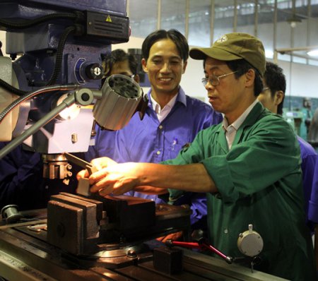 Under the framework of the “Programme Reform of TVET in Viet Nam”, the course on “Conventional Metal Cutting: Turning and Milling” was organized from 21st November to 17th December 2011 with cooperation of GIZ, GDVT and Hung Yen University of Technology and Education (HYUTE). This course is a continuation of the course on “Introductory Training and Competence Assessment” for TVET teachers in Metal Cutting that took place in June 2011 in Viet – Duc Industrial College in Song Cong, Thai Nguyen province. The 21 participants of this course were teachers from the partner TVET institutes of the Programme.