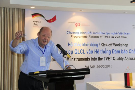 At the kick-off workshop held today in Hanoi the three instruments were introduced and the implementation plan of the cooperative activities were discussed and agreed on with representatives of the selected TVET institutes. VVTAA and GIZ will jointly coordinate advisory services and capacity development activities for management and staff in-charge of quality assurance at the selcted TVET institutes on the effective use of the instruments. It is planned to conduct basic and advanced training courses on the implementation, data analysis and writing of the reports on the results of tracer studies, enterprise surveys and the implementation plan of workshop management. Field trips will be conducted in order to coach the TVET institutes’ assigned staff during the implementation phase and final workshops will allow to share the results of the instruments as well as the lessons learnt during the implementation phase.