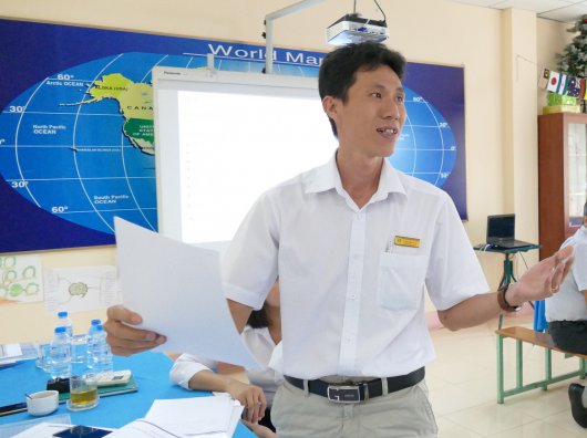 The workshop is flooded with everyday ideas from the teachers about ‘green’ concepts and activities which are currently being implemented at VCMI and which are planned to be carried out in the future to promote environmentally friendly behavior through a dynamic group discussion session; followed by a multitude of constructive opinions from corporate representatives on industrial requirements most graduates hardly meet when getting down to the actual work. In other words, the representatives of the companies articulated their demands which should be reflected in the basic training module. Based on the open and straightforward remarks, VCMI teachers, with the support of Dr Klaus-Dieter Mertineit, expert on Green TVET, Institut für nachhaltige Berufsbildung & Management-Services GmbH, have outlined the module whose topics range from chemicals, waste and energy to environmentally relevant laws and regulations to environmental management system. Highlighted are a focus on practice and visible consequences of action in order to gradually transform the attitudes of the trainees.