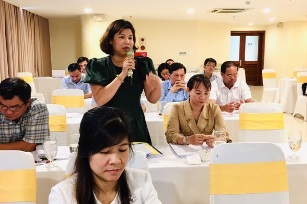 The training workshop consists of 6 thematic presentations. Those are law on contract-based Vietnamese overseas workers, its circulars, decrees and regulations on implementation measurement, finance management of service provision and overseas employment support fund, penalties for administrative violations and database system of contract-based Vietnamese overseas workers. The question-and-answer sessions have been followed after each presentations to facilitate participants comprehend more comprehensively articles of the law. By this way, representatives from DOLAB also understand what difficulties their counterparts at local may face up with, how to resolve it in differently provincial contexts and learn from different resolutions on such as contract-based oversea workers support and management.