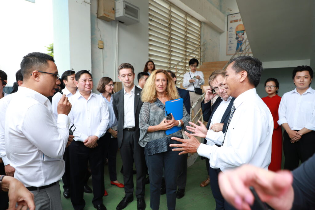 The delegation, led by Ms. Myriam Ferran, Deputy Director-General of Directorate-General for International Partnerships – European Commission, included representatives from EU member states, international organisations, i.e., AFD, KfW, GIZ. The delegation had a chance to observe two workshops on wind and solar energy to explore NTVC’s teaching facilities and the school’s ambition to become a leading technical vocational education and training (TVET) institute in renewable energy sector.