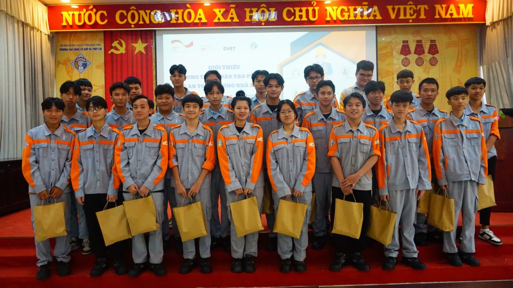 With the goal of improving the understanding of Cooperative Training Programme and Work Safety for 04 occupations: Industrial Electronics (IE), Electronics for Energy and Building Technology (EEB) , Mechanics for Sanitary, Heating and Climate Technology (SHK) and Metal Cutting (MC), the Programme Reform of TVET in Vietnam (TVET Programme) collaborated with the College of Machinery and Irrigation (VCMI) to organize this event with the participation of more than 100 students of the 3rd pilot class on August 31, 2023.