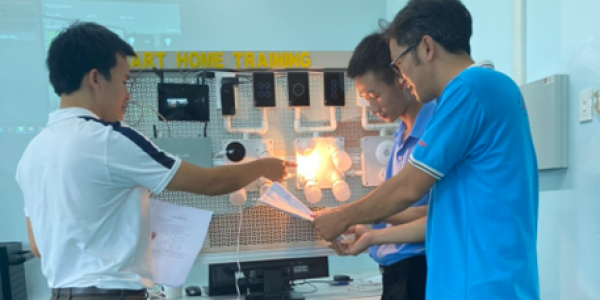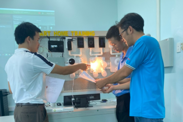Mr. Kieu Tan Thoi – the Vice Dean of the Engineering Technology Faculty, provided feedback on the course: “I found this course very useful for teaching related subjects in the future as well as highly practical. I had the opportunity to experience technology and smart devices that I hadn’t encountered before. Mr. Phuong guided us to perform installation, programming and operation according to the required technical standards, allowing us to train our students in this direction to meet future business needs. The course duration and content were comprehensive and reasonable, and the testing tools and equipment were well-prepared.”