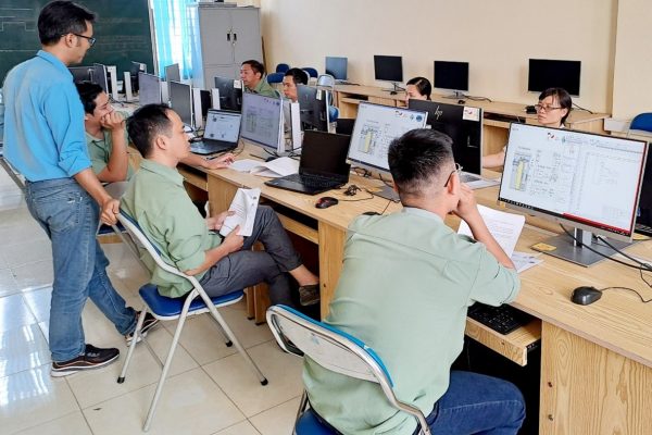 VCMI teachers did exercises to reinforce theory as well as practice with increasingly difficult tasks. At the end of the training, an assessment was also completed by the participants. Ms. Tran Thi Thuy Huong, the Vice Dean of VCMI Electrics-Electronics Faculty, shared: “In the past, we always had difficulties in implementing training on PLC programming due to limited resources and skills. After this training, we now feel more confident to train our students”.