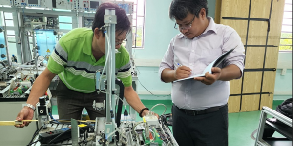 After taking the course, the teachers were competent in using the GRAFCET platform for assembling, programming and operating the mechatronic system. Mr. Dinh Trung Trong, a teacher from Hue Industrial College, shared his thoughts: “I used only to write PLC programmes in the main OB programme; now I can write in FB and FC subroutines, the main programme can be used for monitoring. This is very effective in the process of programming massive control systems.”