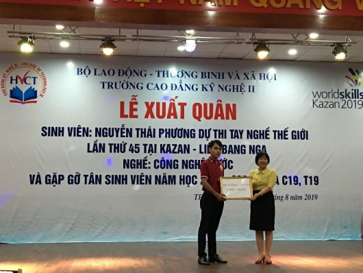 Last week the Ho Chi Minh City Vocational College of Technology II (HVCT) gave a cheerful send-off ceremony for Nguyen Thai Phuong, Wastewater Engineering Technician, and his trainer, Mr. Nguyen Xuan Thanh Nam as they leave for Kazan (Russia) to participate in the 45th WorldSkills Competition.