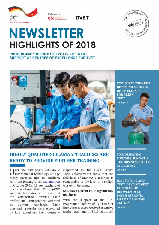 we are glad to send you our Newsletter “Highlights of 2018” presenting the activities and achievements of the Component 2 “Support of Centres of Excellence for TVET” during the past year.