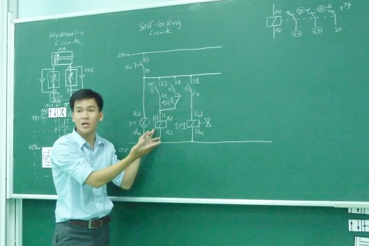 Under the guidance of Mr Frank Schulze, International Short-term Expert and Mr Kieu Tan Thoi as well as Mr Le Van Hung, both LILAMA 2 teaching staff, the participants learnt (i) to develop the work steps plan for specific hydraulics controls application, (ii) to mount, install, commission, test and document applied electro-hydraulics and proportional hydraulics control systems with laboratory and industrial components, (iii) to carry out systematic trouble-shooting in hydraulic controls, (iv) to describe, demonstrate and observe safety regulations, and (v) to prepare a training unit in the Layer-2 Workshop (classified according to the 3-Layer Workshop Concept) which includes information gathering, planning, implementing, function and safety checking, evaluation and documentation.