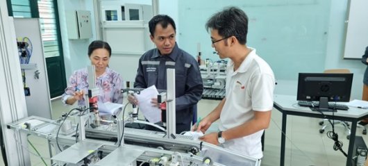 During the training on advanced PLC, the teachers had the chance to get to know the appropriate installation and connection of sensors, pneumatic and hydraulic systems. They could conduct insulation resistance measurement, PE conductor resistance, or voltage measurement. Particularly, the PLC programming with GRACFCET algorithm flowchart and Interface design for HMI screens, expected to be a part in the examination, was also planned in this training for the participants.