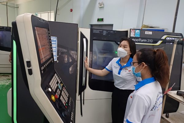 LILAMA 2 International Technology College (LILAMA 2) pays significant attention to engaging more women and young people in technical and vocational education and training (TVET). Thus, from May 2022 the college implemented onwards three trainings for overall 36 women industry technicians and fresh graduates from vocational colleges and universities on Fundamental DIN/ISO Programming – and Operations of CNC Turning and Milling Machines. LILAMA 2 plans to expand their offer for women and young industry technicians in 2023 with an advanced training course on CNC programming and machine operation.