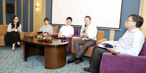 The next was the panel discussion, Mr. Vu Ba Toan from the Department of Vocational Skills, Mr. Nguyen Cong Minh Bao from Eurocharm, Ms. Nguyen Vu Bao Chi from Hue Industrial College and Mr. Pham Xuan Dieu from the Vietnam Water Supply and Sewerage Association had a discussion about the difficulties and challenges related to ensuring skilled human resources in the field of sewage and wastewater treatment, if the workers were trained and provided by current vocational training units in Vietnam meeting the needs of the market to varying degrees, the expectations of businesses for the supply of human resources in general, as well as the specific action from the relevant authorities.