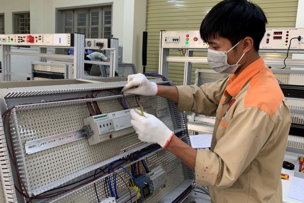The Competency Assessment was held directly at the Hanoi Industrial Vocational College with the participation of candidates who won gold, silver, and bronze medals in the Occupation of Electrical Installation in the National Vocational Skills Competition 2020. The assessment content includes professional competence and related soft skills. The Independent Assessment Board consists of two International German Experts, two experts from enterprises operating in the field of electrical installation and one teacher from a TVET institution with no candidate participating.