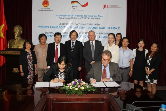 Mr. Lange Jochem, the Country Director of GIZ Viet Nam appraised the joint commitment of two sides to the establishment of the Centre of Excellence as catalyst for the spreading of high quality TVET to other 44 to-be-developed Centres of Excellence as well as to others of the TVET system in Viet Nam. He also mentioned the importance of engaging Vietnamese companies in the piloting of the cooperative training model and that German network partners are ready to embark on this cooperation.
