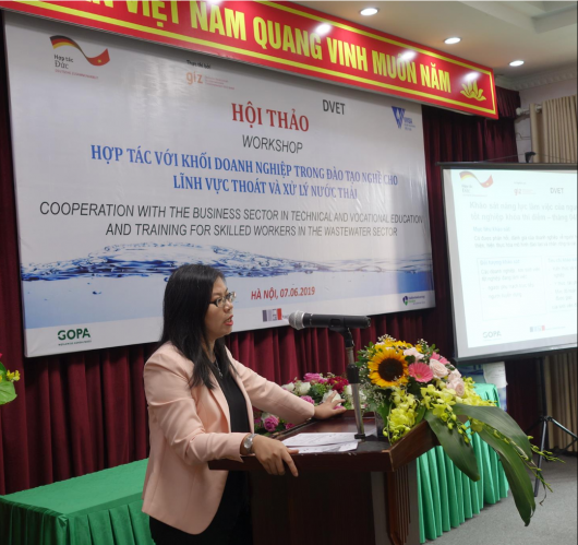 On June 7, 2019, the workshop “Cooperation with the business sector in technical vocational education and training (TVET) for skilled workforce in the wastewater sector” took place in Hanoi. There were more than 60 delegates attending the workshop, including leaders of The Directorate for Vocational Education and Training (DVET), Vietnam Water Supply and Sewerage Association, the management board of Ho Chi Minh Vocational College of Technology II, College of Construction. No.1, Hue Industrial College and representatives of wastewater companies operating in the North, Central and South.