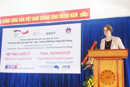 Participants of the workshop expressed great interest and appreciation for the pilot model which was developed and implemented at the Hai Phong Polytechnic College by a German consultancy consortium (Planco Consulting GmbH, Europäisches Bildungswerk für Beruf und Gesellschaft (EBG) and GFA Consulting Group) on behalf of GIZ and the Peoples’ Committee Hai Phong.