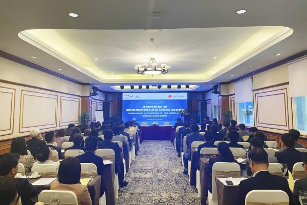 The Law 69, which came into force on the 1st of January 2022, has been developed from former Vietnamese legislation to reinforce the protection for migrant workers. For implementing stakeholders, it is pivotal to get comprehensive understanding about relevant normative documents guiding mandates to upscale the legal ability and avoid mistakes. Within the workshop, updates of the Law 69 regarding: 1) obligations and responsibilities of enterprises sending laborers abroad; 2) overseas employment support fund; 3) penalties for administrative violations in fields of labour, social insurance; 4) database system of contract- based Vietnamese overseas workers have been delivered in detailed for delegates. After each topic, the discussion and exchange experiences received dynamic participation from delegates and responses from experts.