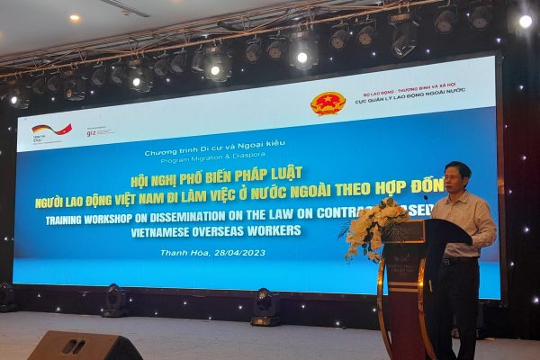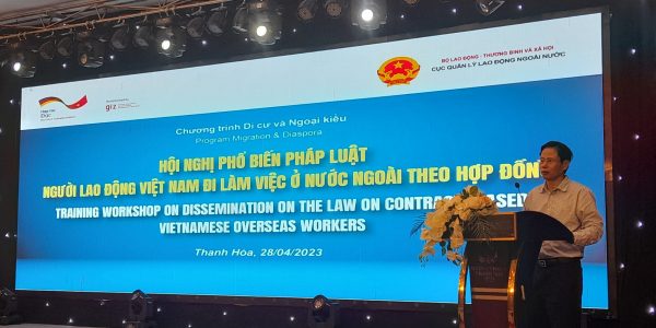 On March 31, 2023, training workshop in dissemination on the Law on Contract- based Vietnamese overseas workers (Law 69) was co-organized by Department of Labour Overseas (DOLAB) and GIZ- Progamme Migration & Diaspora (PMD) in Quang Ninh Province. The workshop welcomed participations of leaders from nearly 80 services enterprises located in Northern Vietnam, specializing in sending labourers to work in foreign countries.