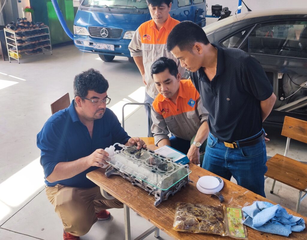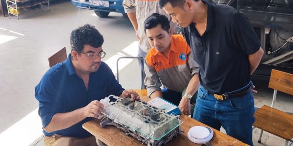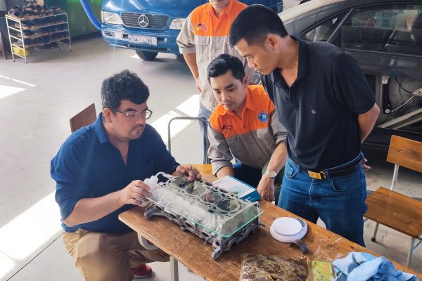 In this training, Mr. Alwin Matthias Angert – Development Advisor shared knowledge on difficulties in maintenance with the latest technology and diagnostics of engines under service condition. All participants discussed and figured out the critical points that they would train trainees like maintenance process, maintenance checklist, how to communicate with customers and deal with hard situations. To improve the training quality, the market-orientation of training helps trainees quickly access necessary and practice skills.