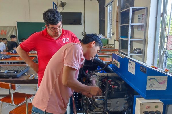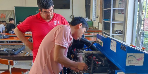 Besides, Mr. Matthias imparted knowledge and skills to diagnose the condition of an engine (petrol-diesel). This knowledge helps to precisely identify wear and tear and damage to an engine. All participants practiced the different measurement methods by procured items supported by GIZ such as Endoscope, Compression pressure recorder. The Development Advisor also emphasised the safety instructions during diagnostic process. In addition, teachers and GIZ’s Development Advisor discussed constructive ideas to supplement the experience and knowledge that will be applied for engine diagnostics training purpose at the college.