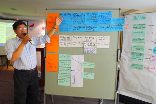 All supported TVET institutes presented their achievements and the lessons learnt in the previous phase. In the second part of the workshop, the participants were divided to 3 working groups. They discussed 3 topics: (1) institutional training measures for multiplication and application of achieved professional competences, (2) establishment and maintenance of an institutional workshop management instruments and systems, (3) enhancement and strengthening of ways and means for the cooperation with enterprises. The results of the group discussion were inputs for planning sustainable implementation of activities. In the last part of the workshop, representatives of 5 PVT 2008 TVET institutes presented their follow-up activities got the comments from the workshop participants as inputs for the finalization of their plans.