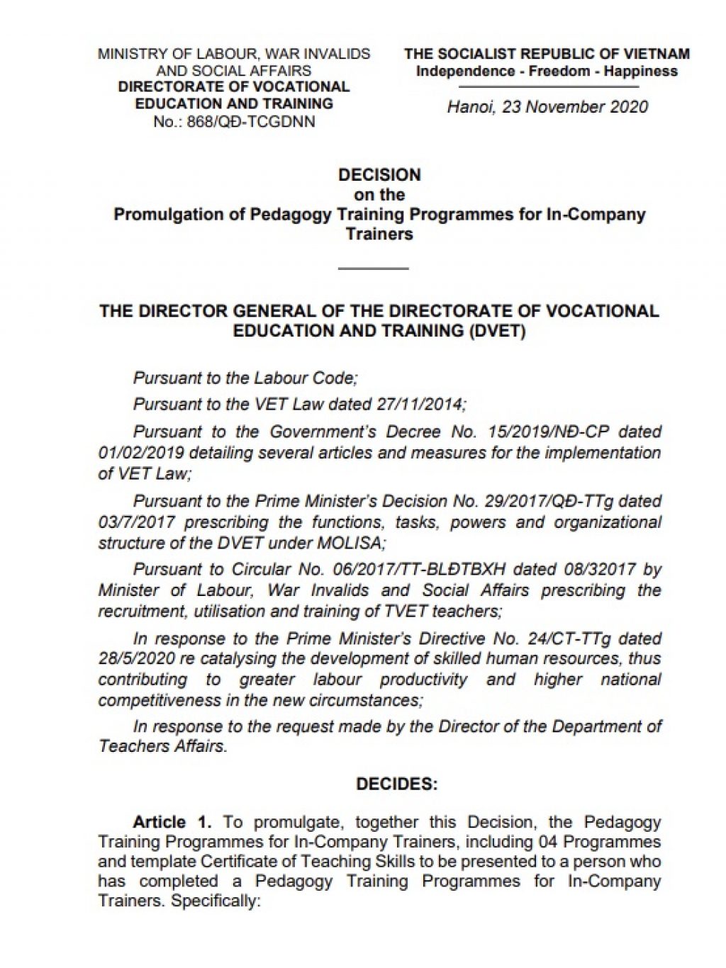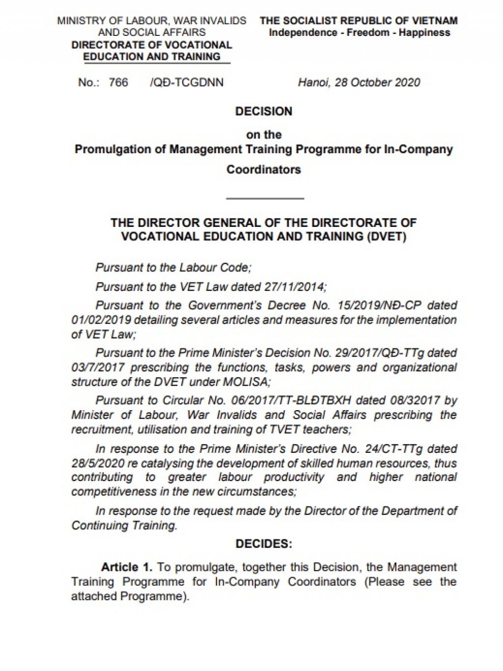 Author/Publisher: The Programme "Reform of TVET in Viet Nam"