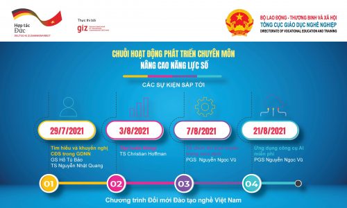 Hiện nay, GIZ đang thực hiện chuỗi hội thảo trực tuyến về chủ đề Chuyển đổi số (DX webinar series) trong giáo dục nghề nghiệp. Chuỗi webinar đã và đang tập trung vào các chủ đề, khía cạnh củ thể gắn với nâng cao năng lực số, phương pháp sư phạm số. Nhằm giúp các nhà lãnh đạo, quản lý, cán bộ, giảng viên nắm được bức tranh toàn cảnh về thực trạng chuyển đổi số tại 11 trường cao đẳng nghề, GIZ đã triển khai tổ chức buổi Webinar số 5.