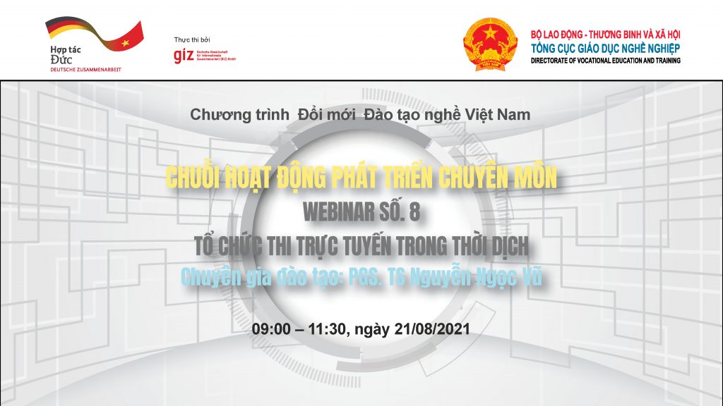 Để tiếp nối chuỗi hội thảo trực tuyến (webinar series) nhằm nâng cao năng lực số và nhận thức về chuyển đổi số cho các cán bộ, giảng viên tại các cơ sở giáo dục nghề nghiệp đối tác, GIZ đã tổ chức Webinar số 8 với chủ đề về tổ chức thi trực tuyến […]