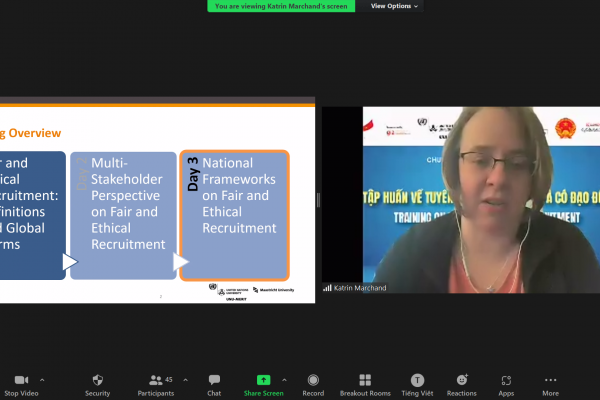 Khóa tập huấn này là một hoạt động thuộc dự án nghiên cứu ‘Di cư lao động bền vừng’ được chương trình PMD tài trợ cho Trường Đại học Khoa học Ứng dụng Bonn-Rhein-Sieg thực hiện. Với sự điều hành của 02 chuyên gia nghiên cứu của trường Đại học Liên Hợp Quốc – Viện Nghiên cứu kinh tế và Xã hội về đổi mới và Công nghệ (UNU-MERIT) và trường Đại học Maastricht. Khóa tập huấn đã cung cấp các kiến thức chuyên sâu về các quy trình tuyển dụng công bằng và có đạo đức, khung pháp lý và các trường hợp nghiên cứu từ các quốc gia khác nhau.