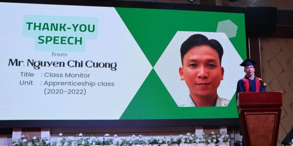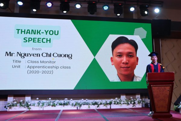 Sinh viên Nguyễn Chí Cường, đại diện của lớp Cắt gọt kim loại khóa K13, phát biểu tại buổi lễ tốt nghiệp: “Chúng em đã nhận được rất nhiều từ mô hình đào tạo phối hợp, không chỉ là kiến thức, kỹ năng, mà còn cả cơ hội nghề nghiệp, định hướng phát triển trong tương lai. Sau khi tốt nghiệp, chúng em sẽ trở lại Công ty Schaeffler Việt Nam với một vai trò mới, sẵn sàng cống hiến cho sự phát triển lâu dài của công ty.”