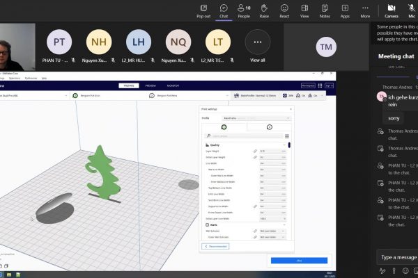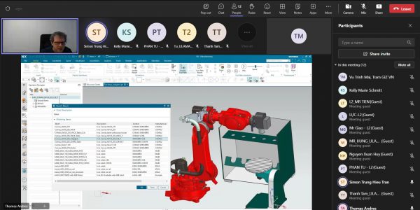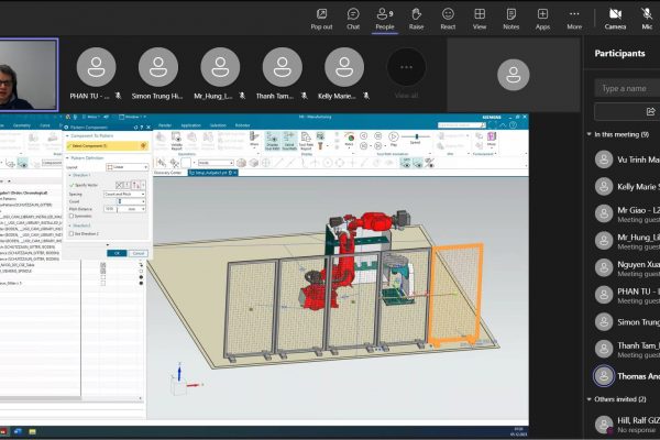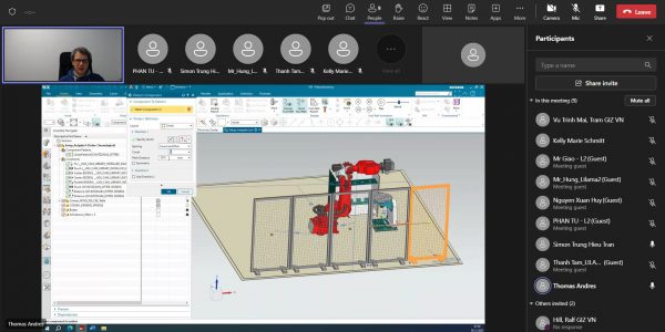 Chín giảng viên từ các khoa Cơ khí và Cơ điện tử của trường Cao đẳng Công nghệ Quốc tế LILAMA 2 (LILAMA 2) đang được đào tạo để nâng cao năng lực về quy trình sản xuất bồi đắp, lập trình robot gia công và mô phỏng các quá trình với bản sao số. Các giảng viên đang học về ứng dụng công nghiệp của robot gia công được điều khiển bởi phần mềm NX của SIEMENS, cũng là phần mềm mà các giảng viên học cách lập trình các robot và mô phỏng khâu triển khai của chương trình bằng bản sao số với Run My Virtual Machine. Các giảng viên cũng đang học về các quy trình khác nhau trong sản xuất bồi đắp công nghiệp, cách thiết kế các sản phẩm công nghiệp với phần mềm SIEMENS NX và ứng dụng các quy trình in 3D với các bản sao số.