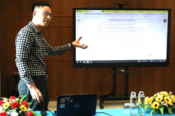 Tham gia “Ngày chuyển đổi số”, một số cán bộ và giáo viên từ phòng Khảo thí và Đảm bảo chất lượng, các khoa: Công nghệ Ô tô, Kinh tế – Tổng hợp, Điện – Điện tử đã có nội dung trình bày về (1) Ứng dụng bài giảng số (trên nền tảng LMS) trong giảng dạy thực hành, tích hợp nghề công nghệ Ô tô; (2) Hiệu quả trong sử dụng bài giảng số (trên nền tảng LMS) trong giảng dạy môn Chính trị (môn lý thuyết); (3) Ứng dụng video tương tác, mô phỏng trong dạy học nghề công nghệ Ô tô; (4) Ứng dụng Claude AI trong dạy, học và nghiên cứu khoa học đối với giáo viên và sinh viên; (5) Kế hoạch triển khai bài giảng số trên nền tảng LMS tại Khoa Điện – Điện tử; (6) Định hướng ứng dụng số trong trong công tác Khảo thí – Đảm bảo chất lượng viên. Các bài trình bày trên đã thu hút nhiều sự quan tâm của đại biểu tham dự vì đúng tình hình thực tế và phù hợp với điều kiện, nhu cầu của giáo viên ở thời điểm hiện tại.