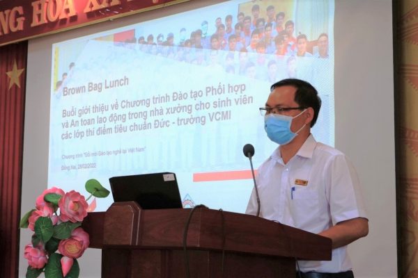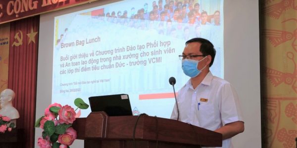 Sáng ngày 28 tháng 02 năm 2022, sự kiện Brown Bag Lunch – Buổi giới thiệu về Chương trình Đào tạo Phối hợp và An toàn lao động trong nhà xưởng đã diễn ra thành công với sự tham gia hào hứng của sinh viên đến từ 5 lớp thí điểm đào tạo phối hợp tiêu chuẩn Đức của 3 nghề: Công nghệ Cơ khí, Sưởi ấm và Điều hòa không khí, Công nghệ Điện tử và Năng lượng tòa nhà, và Điện tử công nghiệp tại trường Cao đẳng Cơ giới và Thủy Lợi (VCMI).