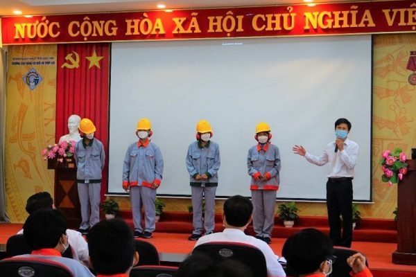 Cũng trong sự kiện này, các em sinh viên được hướng dẫn cách sử dụng đồ bảo hộ cá nhân. Thầy Phạm Văn Sơn, Trưởng Khoa Cơ khí đã hướng dẫn cụ thể và giải đáp thắc mắc của các em sinh viên về cách sử dụng các thiết bị bảo hộ lao động như quần áo, găng tay, giày, kính và mũ bảo hộ.