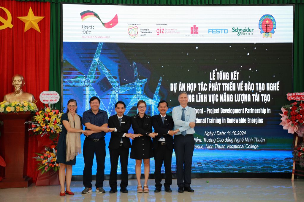 Trường Cao đẳng nghề Ninh Thuận (NTVC) tổ chức lễ tổng kết Dự án Hợp tác Phát triển “Trung tâm đào tạo nghề về Năng lượng tái tạo – Công nghệ điện gió và điện mặt trời”, một dự án ba năm được hỗ trợ bởi Chương trình develoPPP của Bộ Hợp tác Kinh tế và Phát triển Liên bang Đức (BMZ) . DPP được thực hiện giữa các đối tác hợp tác Vietnam Industries Buildings Services JSC (IBS), Festo Didactic từ Đức, Schneider Electric từ Pháp và Tổ chức Hợp tác Quốc tế (GIZ), thay mặt cho BMZ. Dự án góp phần quan trọng trong việc giải quyết nhu cầu ngày càng tăng về lao động có tay nghề trong lĩnh vực năng lượng tái tạo, thông qua việc thúc đẩy sự tham gia của khu vực tư nhân vào giáo dục nghề nghiệp, góp phần vào quá trình chuyển đổi công bằng, xanh và số hóa của ngành năng lượng và sản xuất tại Việt Nam.