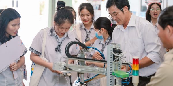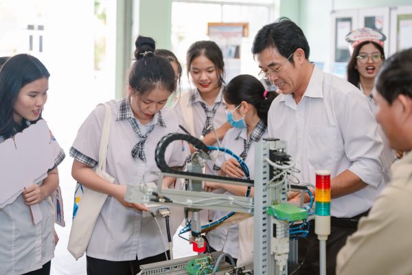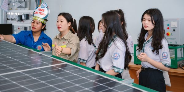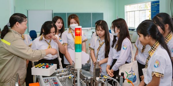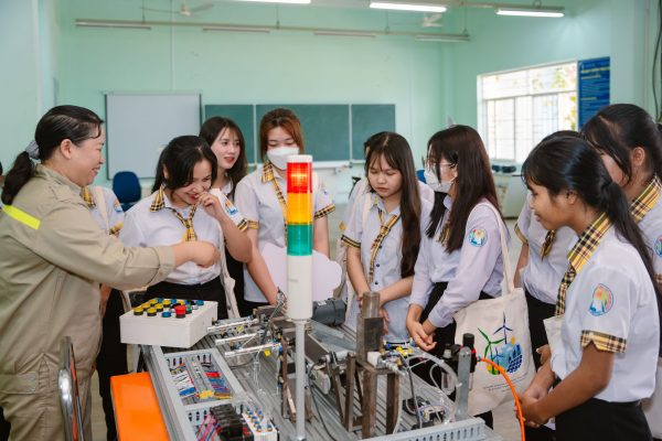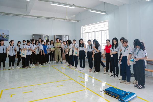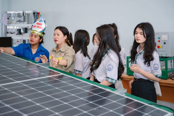 Các bạn nữ sinh cũng được tìm hiểu cụ thể về các ngành nghề trường đào tạo, đặc biệt là những ngành nghề liên quan tới năng lượng tác tạo khi đi thăm quan xưởng thực hành và trực tiếp tham gia nhiều hoạt động trải nghiệm hấp dẫn: vân hành một cách cơ bản hệ thống điện, điều khiển robot hay sửa các lỗi nhỏ trong bảng điều khiển, v.v…
