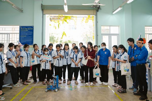 Em Trưởng Tiểu Băng, trường THPT Trường Chinh chia sẻ “Hoạt động thú vị, mang đến cho em rất nhiều thông tin hữu ích, em cũng nhận ra rằng các thiết bị máy móc này không chỉ dành cho con trai mà con gái cũng có thể vận hành một cách dễ dàng”
