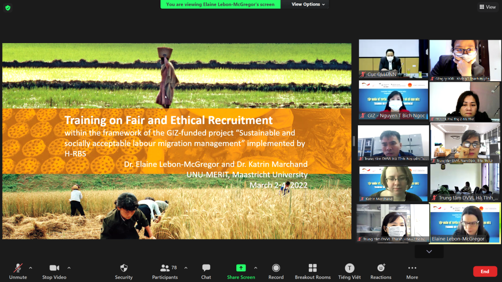 Khóa tập huấn trực tuyến về Tuyển dụng công bằng và có đạo đức Chương trình Di cư & Ngoại kiều (PMD) – Tổ chức Hợp tác Phát triển Đức phối hợp với Cục Quản lý Lao động Ngoài nước, Bộ Lao động Thương binh và Xã hội thực hiện